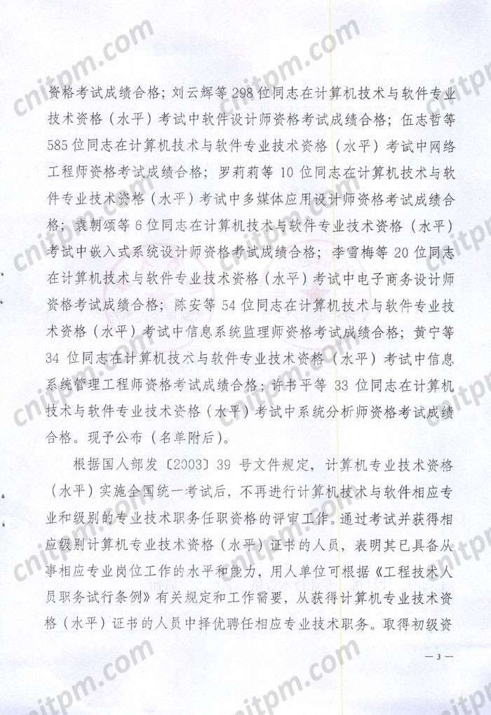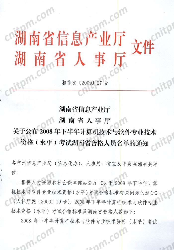 湖南2008年下半年计算机技术与软件专业技术资格(水平)考试合格人员名单