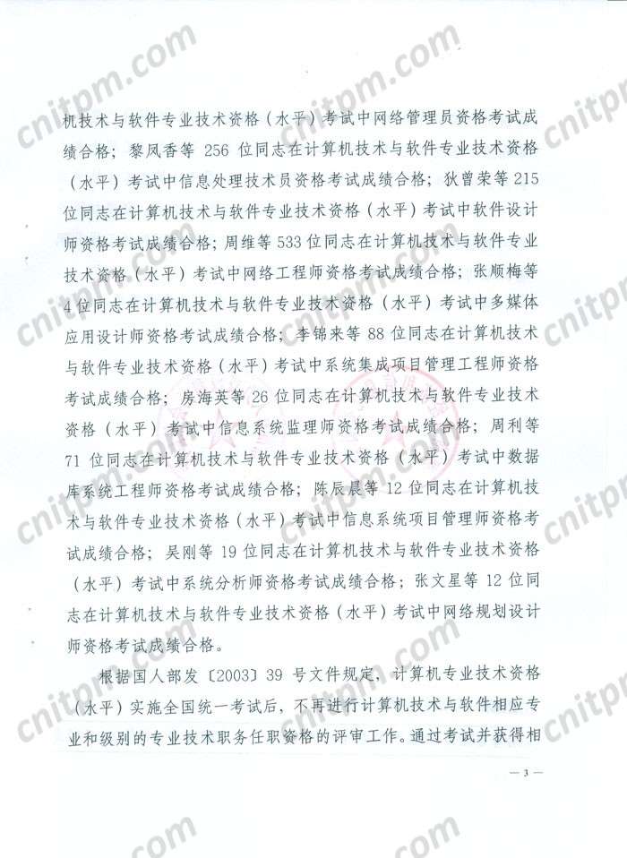 湖南2010年上半年计算机技术与软件专业技术资格(水平)考试合格人员名单