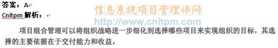 项目组合管理可以将组织战略进一步细化到选择哪些项目来实现组织的目标,其选择的主要依据在于(51)。