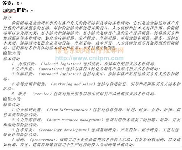 价值活动是企业从事的物质上和技术上的界限分明的各项活动,是企业生产对
