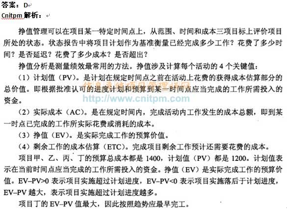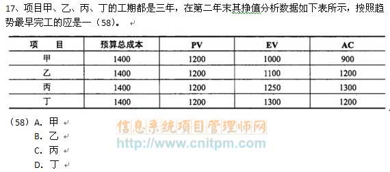 项目甲、乙、丙、丁的工期都是三年,在第二年末其挣值分析数据如下表所示,按照趋势最早完工的应是一(58)