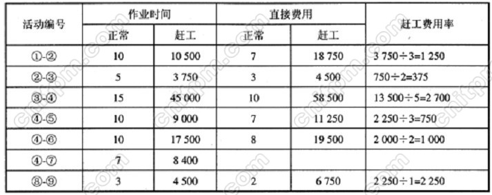 显然在赶工情况下完成时间最短,因此,累加关键路径上赶工的时间即可得出项目完成最短工作量,累加赶工成本即可得出在最短时间内完成项目的成本是多少。