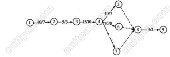 由此判断,关键路径为:①②③④⑥⑧⑨或①②③④⑤⑧⑨。