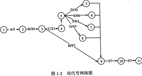 对于问题2,把项目进度计划表(表1-1)进行转换,得到表1-2.