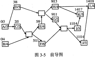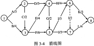 在箭线图表示法中,给每个事件指定一个惟一的号码。活动的开始事件叫做该活动的紧前事件,活动的结束事件叫做活动的紧随事件。