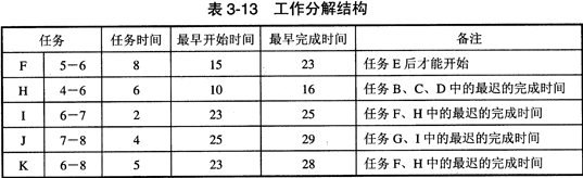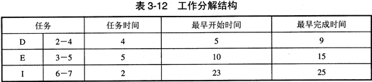 D,E,I的任务跨度如表3-12所示(以最早时间参数为准,根据表3-10得出):
