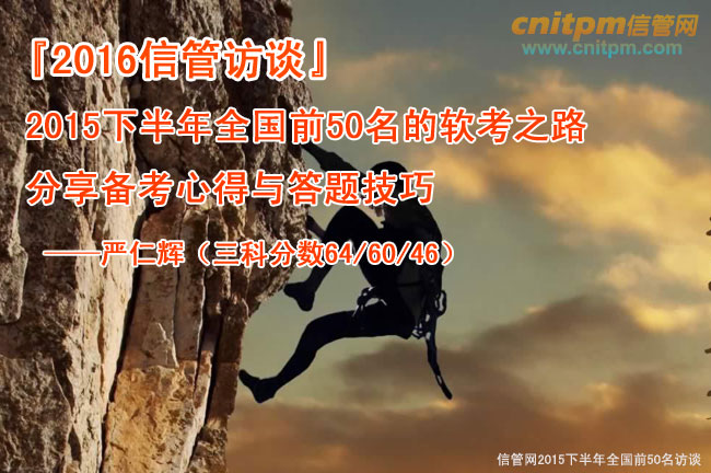 鉴于此,JRS直播为了帮助2016年上半年备考信息系统项目管理师和系统集成项目管理工程师的学员调整好心态,提高备考学习效率。特邀请JRS直播2015年下半年信息系统项目管理师国前50名优秀学员——严仁辉(信管用户名:yanrenhui,总分170)同学做客JRS直播,分享成功经验,就2016年考生在备考阶段所关心的考试问题进行全方位解答指导,交流备考经验、学习技巧,分享成功秘诀,指引您少走弯路,助您梦想成真!(此访谈活动对所有注册学员免费开放)
