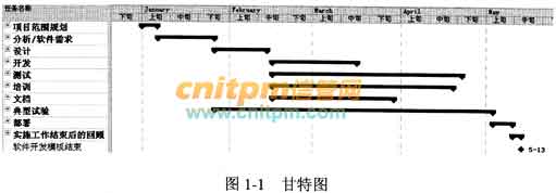 甘特图能够从时间上整体把握进度,很清晰地标识出直到每一项任务的起始与结束时间,但任务之间的关系不能有效识别。