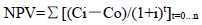 其中:Ci--现金流入量,Co--现金流出量,n--建设项目的计算期,i--行业基准收益率、折现率、期望最低的投资回报年复利利率。