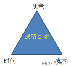 项目管理:把各种系统、方法、人员结合在一起,在规定的时间、预算和质量目标范围内完成项目的各项工作。