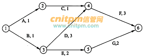 根据该工程7 个作业的紧前作业以及所需时间,可画出如下网络计划箭线图。