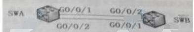 53、在两台交换机间启用STP协议,其中SWA配置了STP root primary,SWB配置了STP root secondary,则图中( )端口将被堵塞。