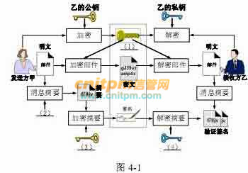 全电子邮件技术对邮件内容进行加密和数字签名。安全电子邮件技术的实现原理如图4-1所示。