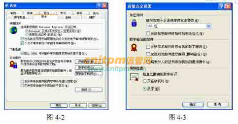 为了在outlook express中使用安全电子邮件技术必须安装和配置数字证书。甲在图4-2所示的对话框中如何配置,方能在他发送的所有电子邮件中均添加数字?
