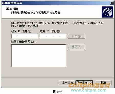 图3-3是dhcp服务器安装中的添加排除窗口。