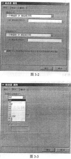 在主机A和主机B之间建立起安全的通信通道,需要创建两个筛选器列表,一个用于匹配从主机A到主机B (隧道1)的数据包,另一个用于匹配从主机B到主机A (隧道2)的数据包。在创建隧道1时需添加“IP筛选列表”,图3-2所示的“IP筛选器属性”中“源地址”的“IP地址或子网”应该填(6),“目的地址”的“IP地址或子网”应该填(7)。配置隧道1不筛选特定的协议或端口,图3-3中“选择协议类型”应该选择(8)。