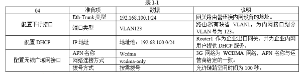 某企业分支与总部组网方案如图1-1所示,企业分支网络规划如表1-1所示。