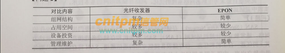 该网络拓扑是基于epon韵技术组网,与传统的基于光纤收发器的组网有所不同。请 从组网结构复杂度、设备占用空间大小、设备投资多少、网络管理维护难易程度等几方面 对两种网络进行比较。