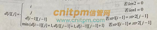 生物学上通常采用编辑距离来定义两个物种DNA序列的相似性,从而刻画物种之间的进化关系。具体来说,编辑距离是指将首将一个字符串变换为另一个字符所需要的最小操作次数。操作有三种,分别为:插入一个字符、删除一个字符以及将一个字符修改为另一个字符。用字符数组str1和str2分别表示长度分别为len1和len2的字符串,义二维数组d记录求解编辑距离的子问题最优解,则该二维数组可以递归定义为: