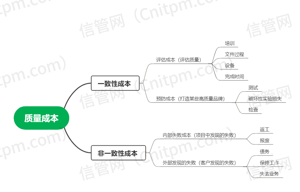 一致性成本:该成本是预防性的,在缺陷发生之前付出的,用于质量与要求或规范一致而付出的成本。