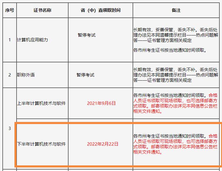 2021年全国各类专业技术资格考试各类证书领取通知