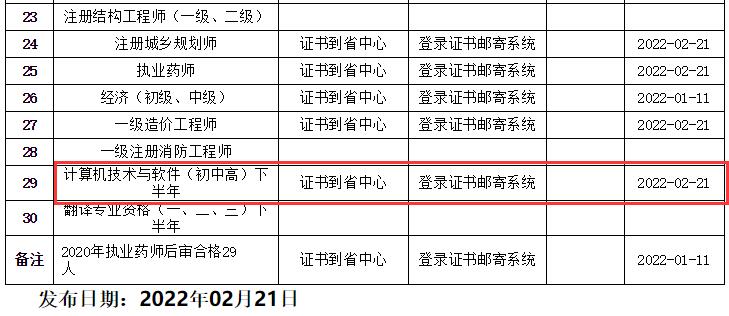 通过河北人事考试网“2021年度全省专业技术资格证书发放进度一览表”了解得知,目前河北2021年下半年软件设计师证书已到省中心,考生于2022年2月21日起可登录证书邮寄系统进行办理,具体如下: