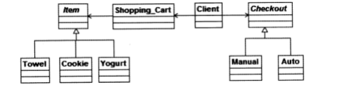 假设现在要创建一个简单的超市销售系统,顾客把饼干、酸奶、毛巾等物品(Item)加入购物车(Shopping_Cart),在收银台(Checkout)人工(Manual)或自动(Auto)把购物车中所有物品价格汇总到总价格后结账。这一业务需求的类图(方法略)设计如下图所示,采用了(1)模式。其中(2)定义以一个Checkout对象为参数的accept操作,由子类实现此accept操作。此模式为(3),适用于(4)。