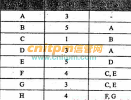3、 某项目包含的活动如下表所示,完成整个项目的最短时间为(1 )周。不能通过缩短活动(2)的工期,来缩短整个项目的完成时间。