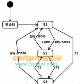 采用面向对象方法对会员积分系统进行分析与设计,得到如图3—1所示的状态图和图3-2所示的类图。