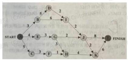 下图是一个软件项目的活动图,其中顶点表示项目里程碑,连接顶点的边表示活动,边上的权重表示完成该活动所需要的时间(天),则活动(1)不在关键路径上。活动BI和EG的松弛时间分别是(2)