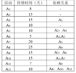 9、 某项目的活动持续时间及其依赖关系如下表所示,则完成该项目的最少时间为( )天。