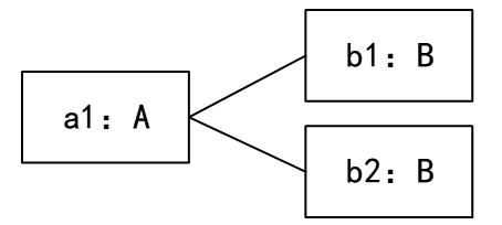 UML图中, 对象图展现了( ),( )所示对象图与 下图所示类图不一致。