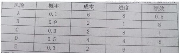 某项目多个风险发生概率和对成本、进度、绩效的影响如下∶