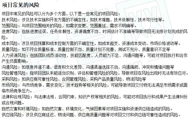 项目风险管理旨在识别和管理未被项目计划及其他过程所管理的风险,如果不妥善管理,这些风险可能导致项目偏离计划,无法达成既定的项目目标。