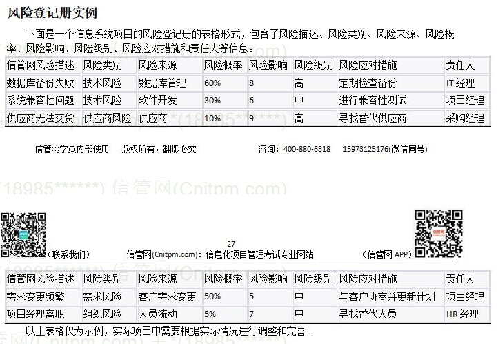 (2)请根据你所描述的项目,写出该项目的风险登记册,并描述风险登记册的具体内容在项目风险管理整个过程中是如何逐步完善的。