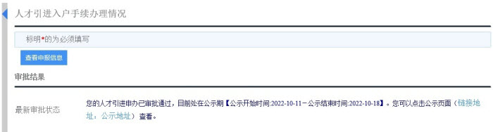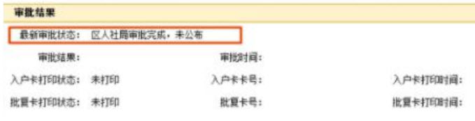 5、公示期过后,大家可以在申办系统看到审核结果、审核时间、入户卡卡号等信息(一般也会短信告知大家)