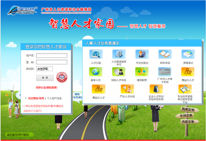 2、广州智慧人才家园(网址链接:https://gzrsj.rsj.gz.gov.cn/vsgzhr/login_home.aspx)
