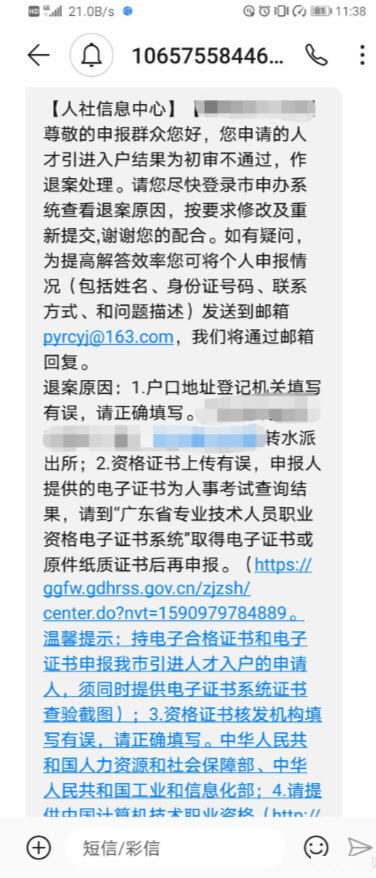 注:如果审批失败,人社局会给你填写信息留下的电话号码发短信,并告知哪里有问题要如何修改。大家按照提示进行更正即可。