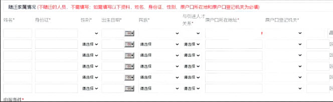 ●随迁家属情况:如果你上面“是否有随迁”选了“有”,那么还需要填写随迁家属情况,请根据实际信息如实填写。如果你上面“是否有随迁”选了“无”便不会出现“随迁家属情况”这一栏