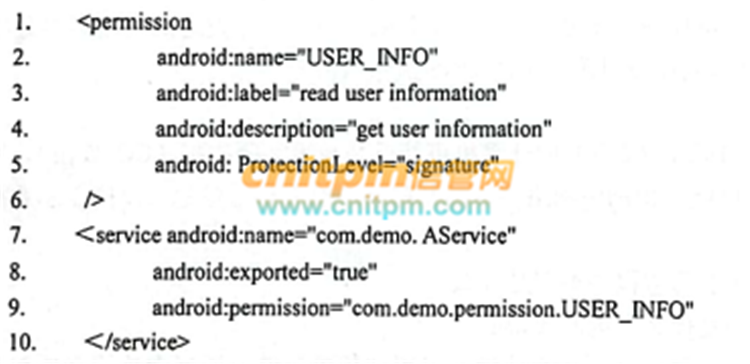 (3)假如有移动应用A提供了 AService服务,对应的权限描述如下: