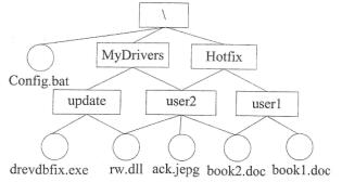 1、 若某文件系统的目录结构如下图所示,假设用户要访问文件book2、doc,且当前工作目录为MyDrivers,则该文件的绝对路径和相对路径分别为( )。