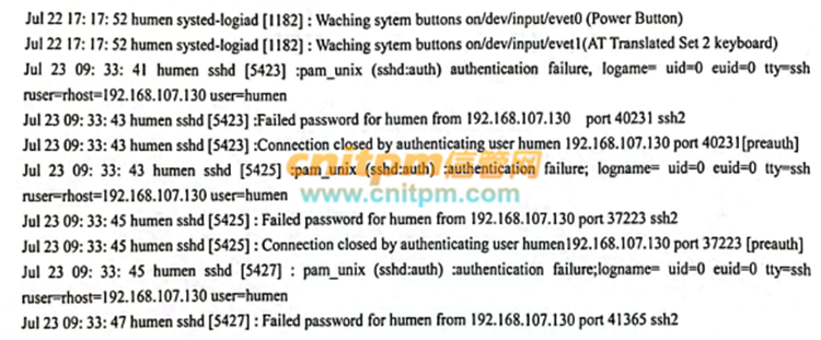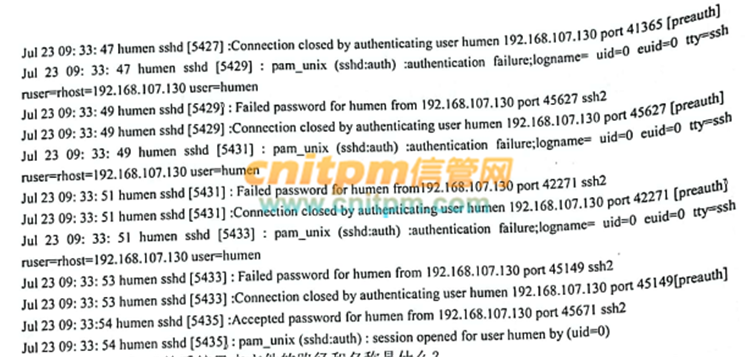 问题三:1、/var/log 2、accepted password for human from 192.168.107.130 port 45671 ssh2