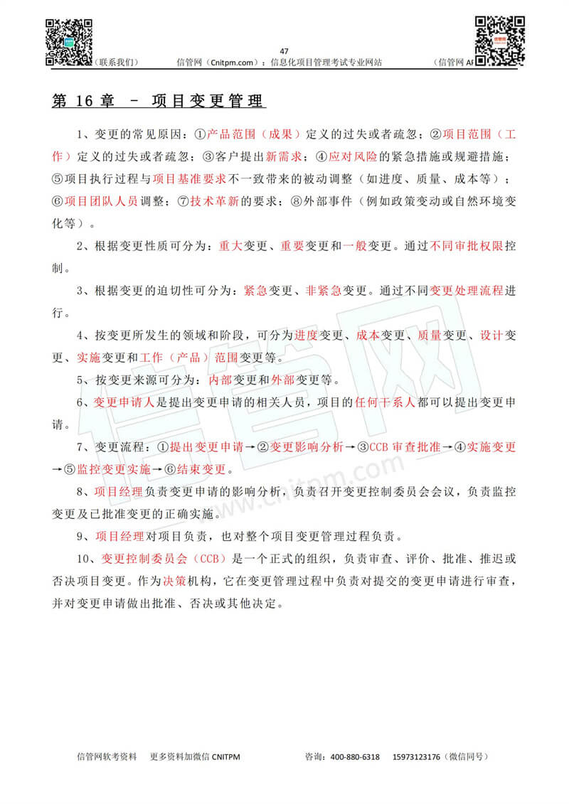 以下是由JRS直播整理的系统集成项目管理工程师考点默写本(普通版)《第16章-变更管理》的参考答案,供广大考生进行查看: