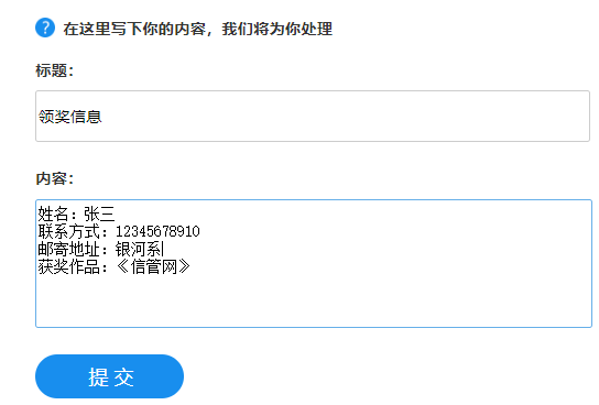 领奖信息发送方式: