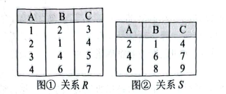 20-21、假设关系R和S分别如下图①和图②所示,那么关系代数表达式RNS的结果集等于();RS的结果集的属性列数和元组数分别为()。