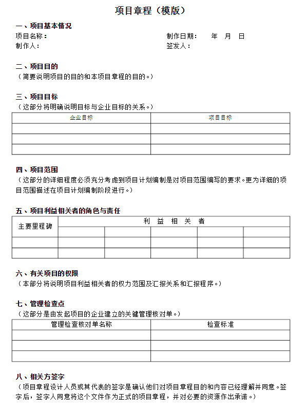 ⑧项目审批要求(例如,评价项目成功的标准,由谁对项目成功下结论,由谁签署项目结束);