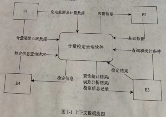 1.e1:充电桩,e2:管理员,e3:记量检测人员,e4:第三方服务查询系统