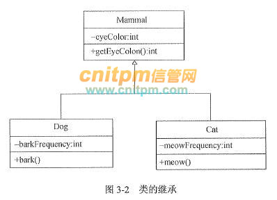 如图 3-2所示,Dog和 Cat类都是从 Mammal继承而来,具有父类的 eyeColor属性特征,因此在子类中就可以不用重复指定 eyeColor这个属性。