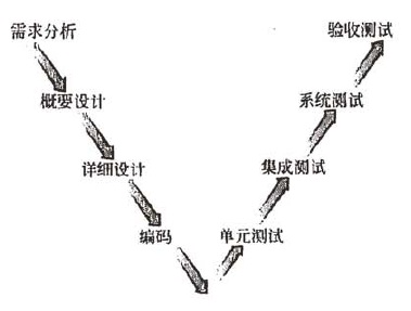 在V模型的开发阶段一侧,先从定义业务需求、需求确认或测试计划开始;然后把这些需求转换到概要设计、概要设计的验证及测试计划,从概要设计进一步分解到详细设计、详细设计的验证及测试计划;最后进行开发,得到程序代码和代码测试计划。而在测试执行阶段一侧,执行先从单元测试开始,然后是集成测试、系统测试和验收测试。