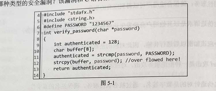 1.缓冲区(栈)溢出。不对数组越界进行检查。